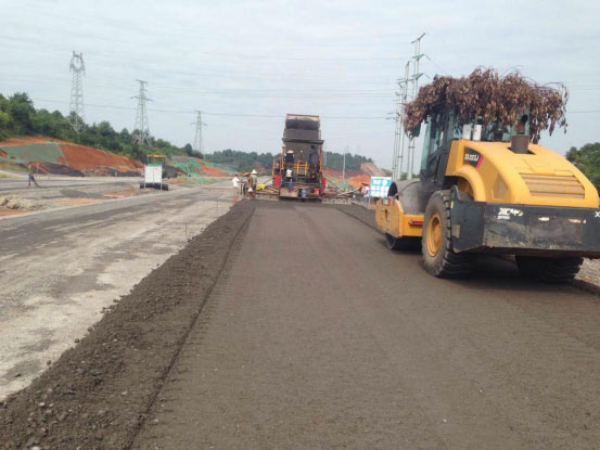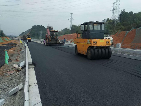 3、道路工程:K0+060~K2+040右幅機動車道已完成第一層瀝青攤鋪,左幅機動車道已完成240米第一層瀝青攤鋪,左右幅輔道水穩(wěn)攤鋪完成1800米