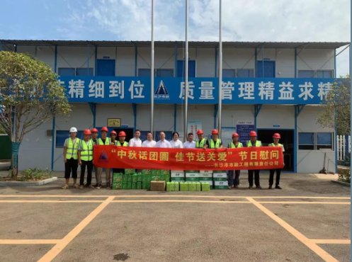 9月7日,在中國(guó)傳統(tǒng)節(jié)日中秋節(jié)來臨之際,公司黨委委員、總經(jīng)理石含,公司黨委委員、副總經(jīng)理丁紅軍領(lǐng)導(dǎo)一行深入公司重點(diǎn)項(xiàng)目開展中秋慰問活動(dòng),為節(jié)日里仍然奮戰(zhàn)在一線的職工送上了誠(chéng)摯的祝福。