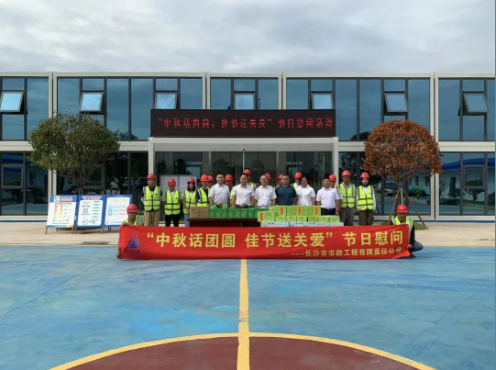 公司總經(jīng)理石含,副總經(jīng)理丁紅軍為靳江河西岸(含東山灣路)綜合整治工程項(xiàng)目、青竹湖統(tǒng)征儲(chǔ)備地塊配套路網(wǎng)工程項(xiàng)目 、秋江西路等六條路工程項(xiàng)目、長(zhǎng)沙機(jī)場(chǎng)中軸大道工程項(xiàng)目的一線員工發(fā)放了月餅、水果、礦泉水等慰問品,帶去公司對(duì)他們的問候和囑托,對(duì)大家的敬業(yè)奉獻(xiàn)精神表示高度贊揚(yáng),并叮囑大家一定要保重身體,注意安全,圓滿完成施工任務(wù)。